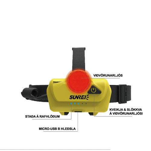 SunreiApollo er 700 lúmena LED höfuðljós, sem stjórnað er á auðveldan hátt með snúningsrofa á hliðinni. Rafhlöðupakkinn aftan á er með tveimur endurhlaða...