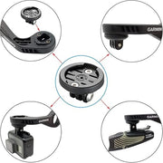 Festing sem býður upp á GoPro‑tengipunkt fyrir myndavél eða ljós beint við Garmin festingu. Hún passar á Garmin og notar snúnings lausn fyrir hraða og einfalda uppsetningu og losun.